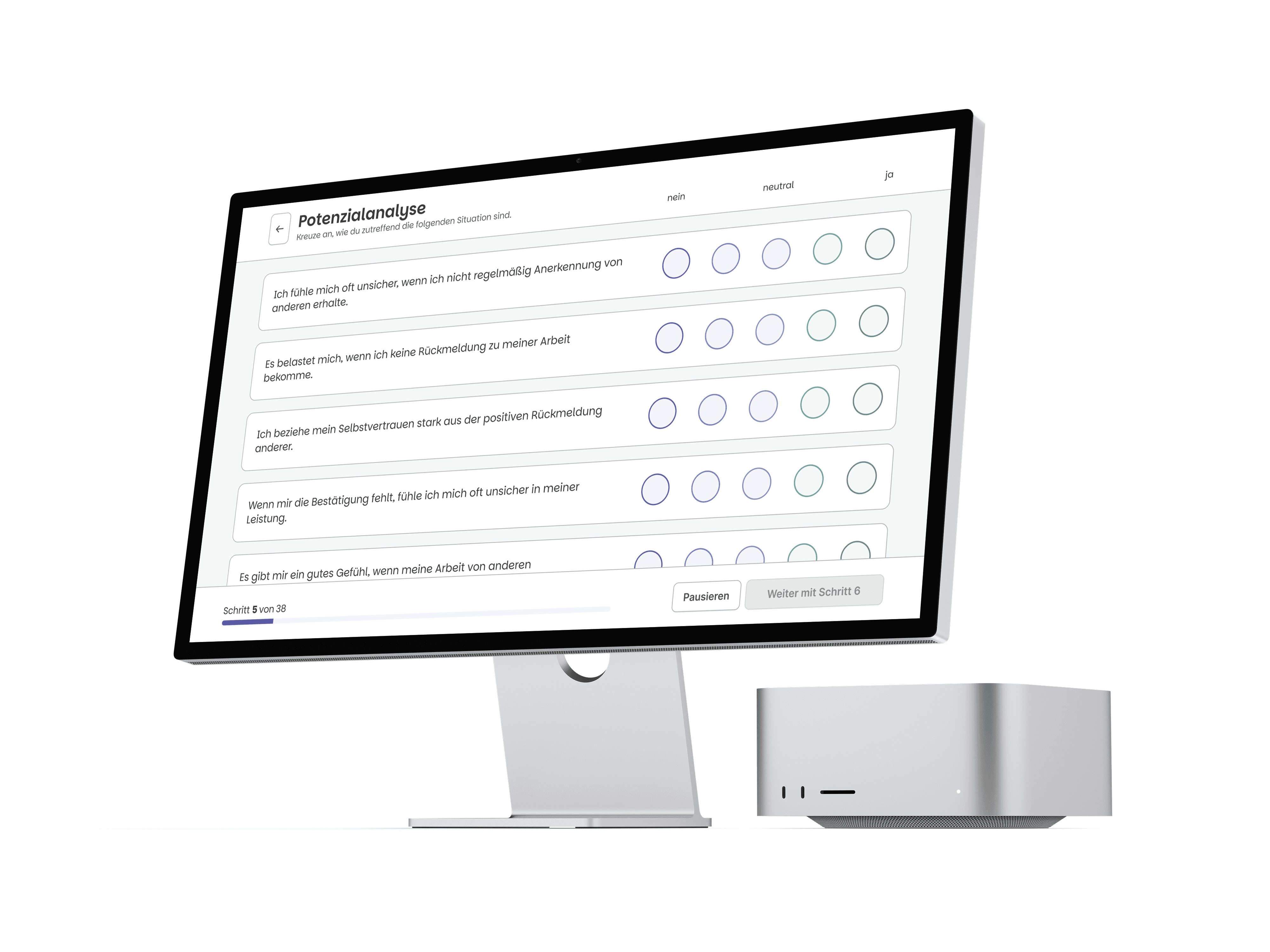 Meine Aufgabe war es, diesen Weg als UX-Designerin zu begleiten – und eine digitale Plattform zu gestalten, die den Zugang zu tiefgreifenden Persönlichkeitsanalysen einfach, verständlich und alltagstauglich macht.